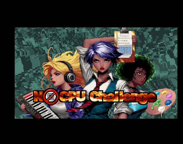 But as if this wasn’t enough, Folcka also did the graphics for the fine “No-CPU challenge“, which won the alternative demo competition at Evoke in August – under the group “Demostue Allstars” – and why is that? Yes, Demostue is our local meeting here in Copenhagen, hosted by Presence every 2-3 months – which is a cosy and excellent initiative and help us keep eachother on our toes in a friendly atmosphere – and this production brought together the immense talents of Blueberry, Slide, Slammer and Folcka, resulting in a very polished production of which the code (as the title suggests) does not use the CPU (!)…